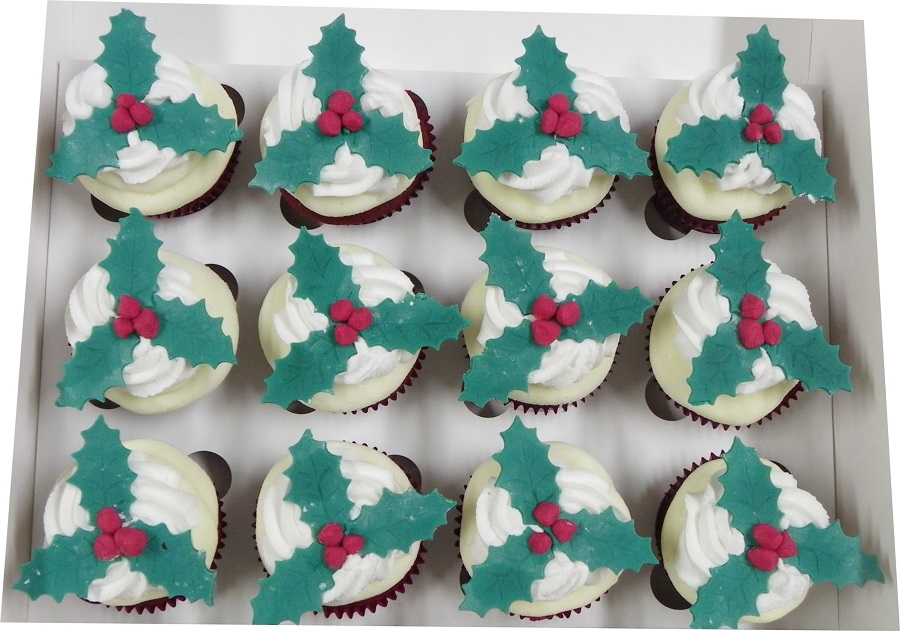 12 Holly Red Velvet Christmas Gourmet Cupcakes