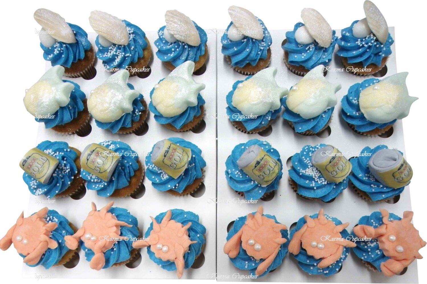 Karma Cupcakes specialise in delicious, hand crafted cupcakes. Celebrate your next big occasion with a hand made custom designed or gourmet cupcake. Our custom range allows you to personalise the look and flavour of your cupcake to a tee. If you’d like to order a custom designed cupcake, we require two (2) business days to personalise your perfect cupcakes. Please see our previous designs, as you may like to order from the website. If you would like something more personailsed, please message us via our contact page to start your very own design process!