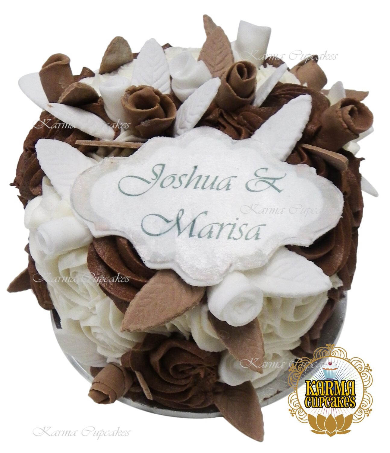 Chocolate Vegan 8 inch Cake with Rose Swirl Buttercream Icing. Serves 16-20 cafe size portions