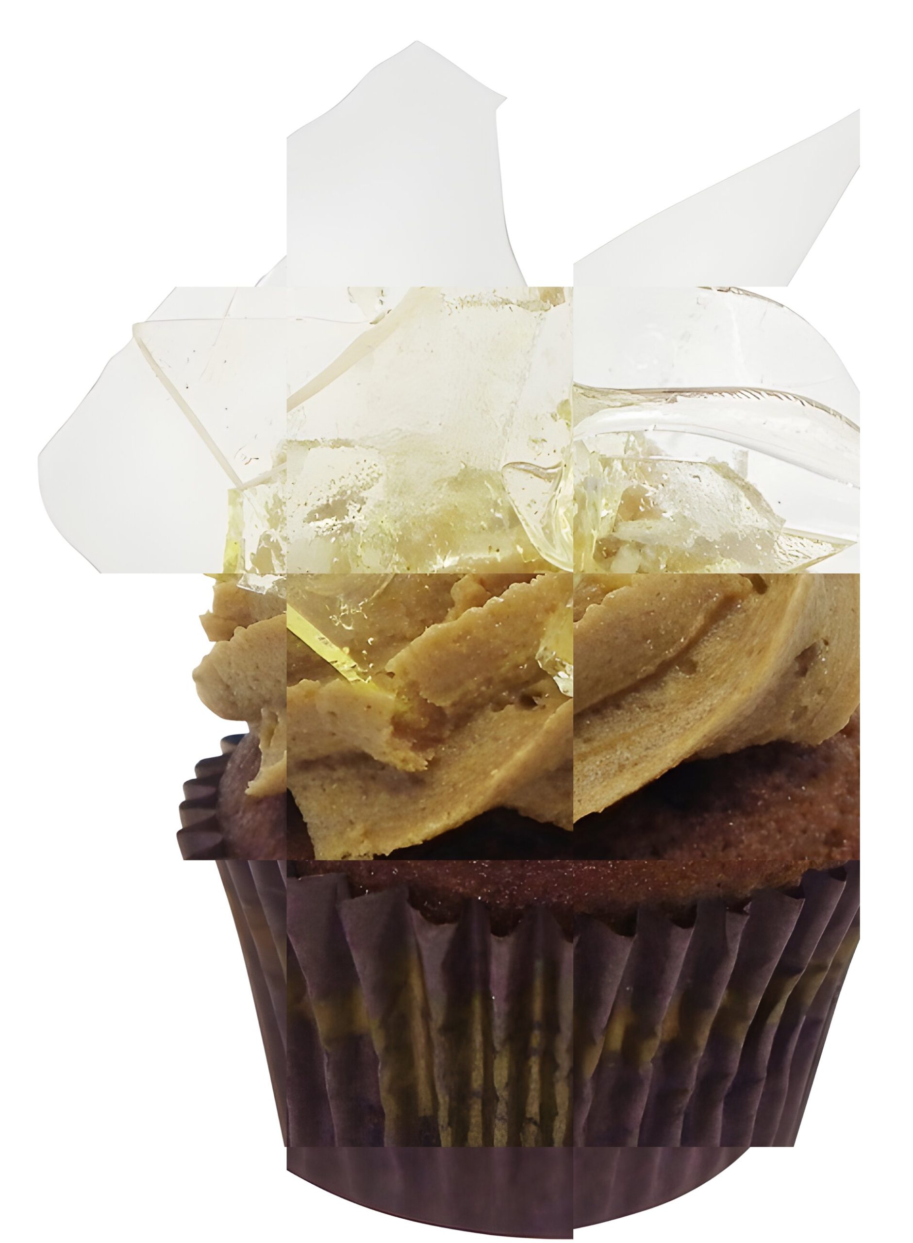 Enjoy the full flavour of a thick and rich caramel mud cupcake, a generous swirl of caramel icing and shattered toffee pieces.