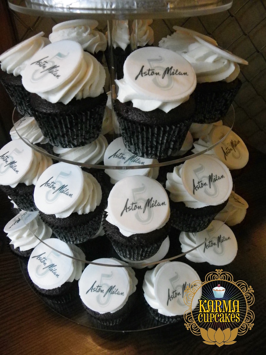 Cupcakes (minimum order of 18 cupcakes to fill a 3 tier stand) – Cupcakes with an edible logo/ photo can be chocolate and vanilla (icing colour to match logo and top cutting cake) for $4.85 each. (other flavours are available and are subjected to a slight price increase of 25c – 35c depending on if you would like fillings, cheesecake topping or are Gluten Friendly). If choosing other flavours, we work on one different flavour per 12 cupcakes. Please see the “Custom made Cake/ Cupcakes flavour list” at the top of the websites home page.