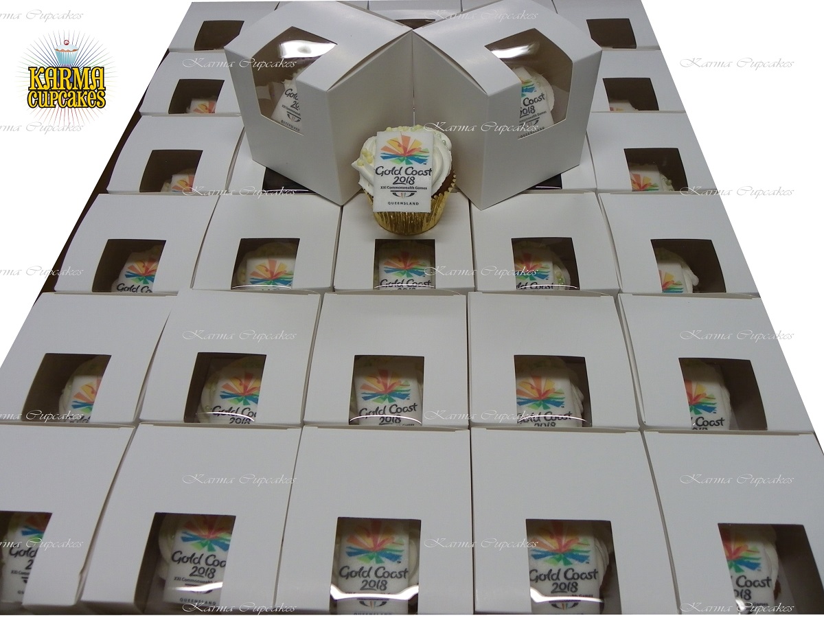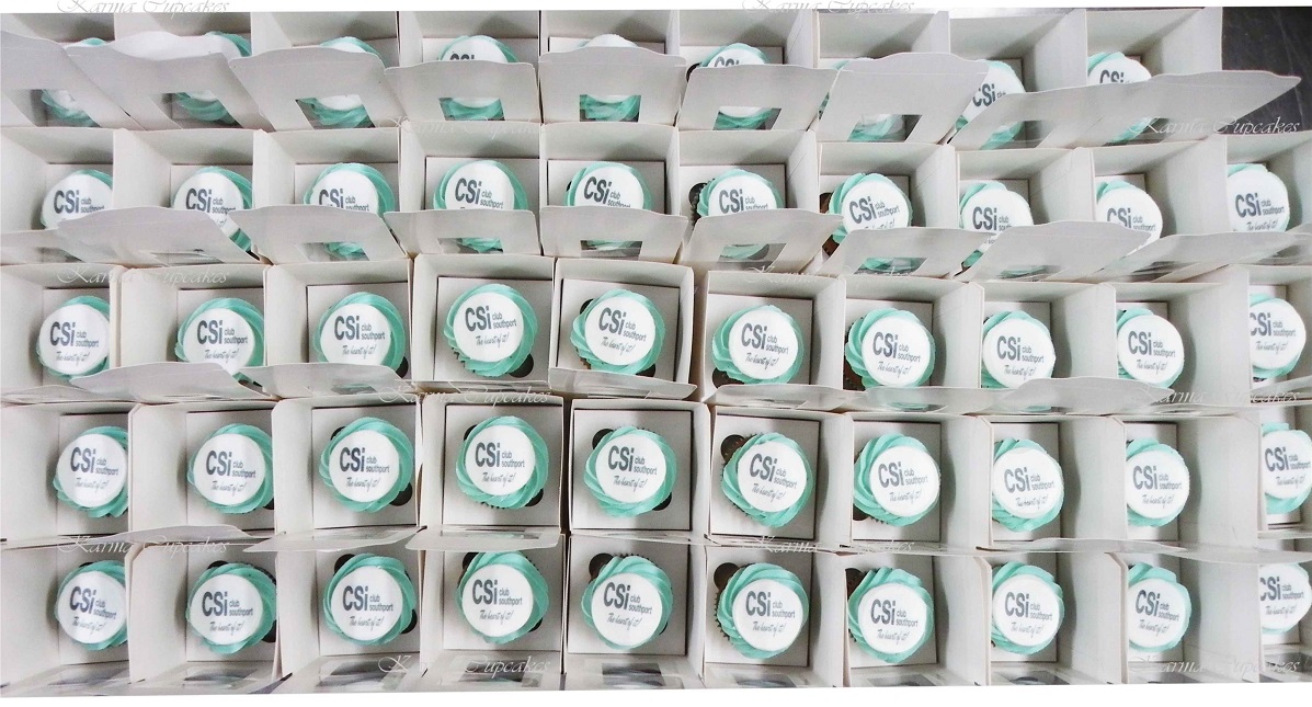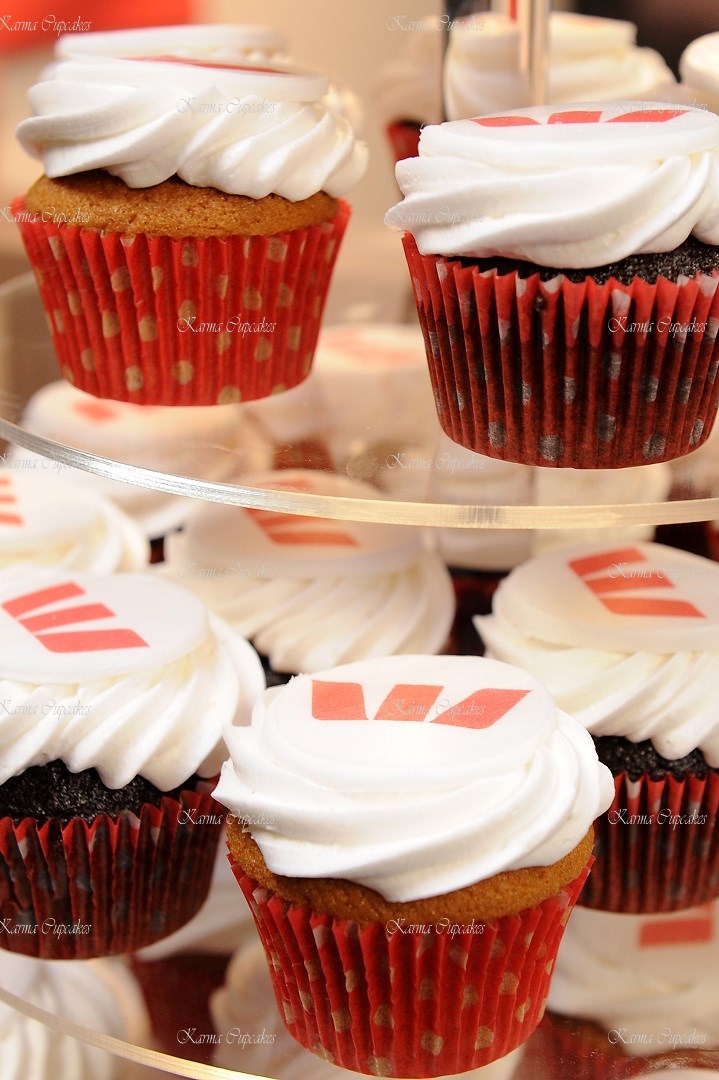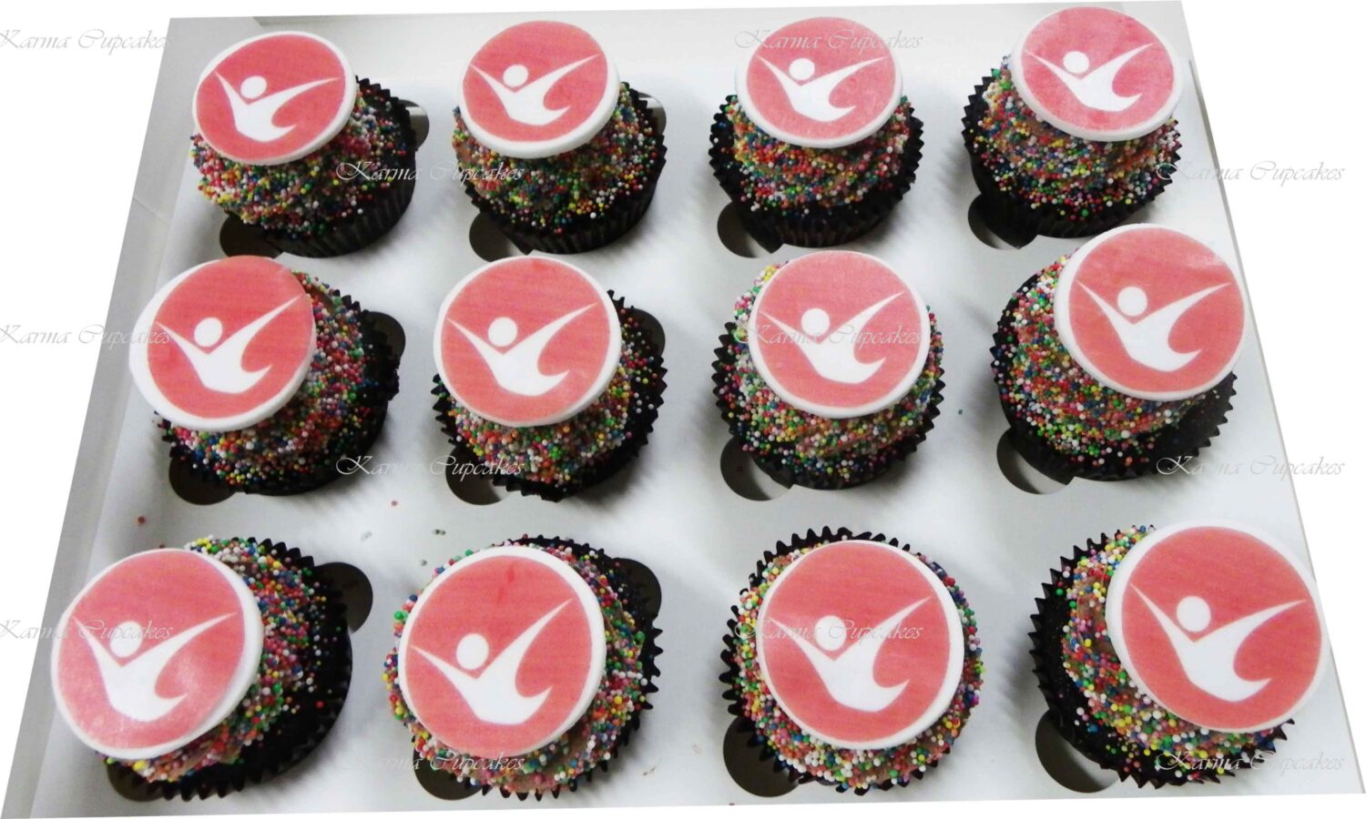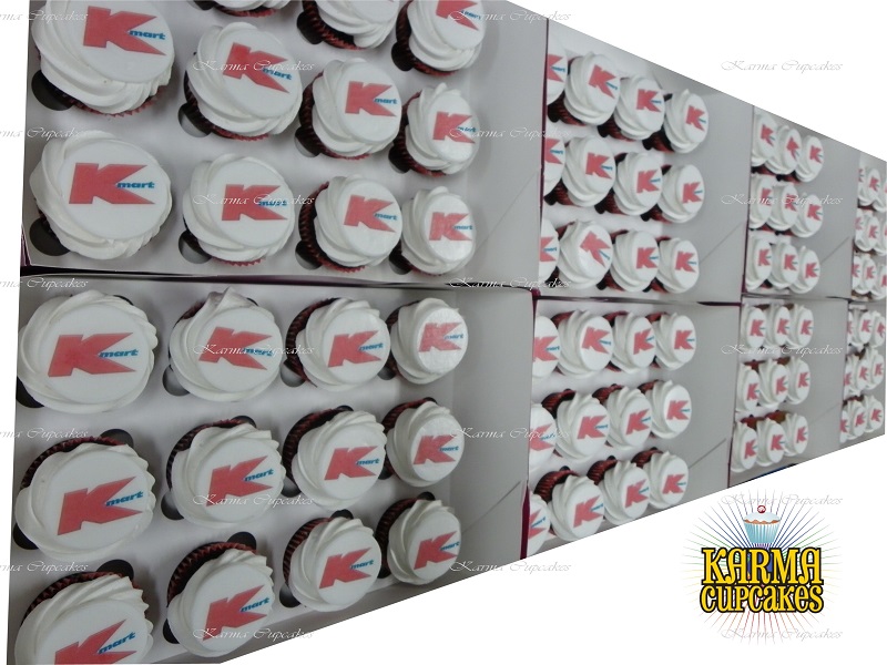 Karma Cupcakes is a specialist in corporate logo cupcakes.
