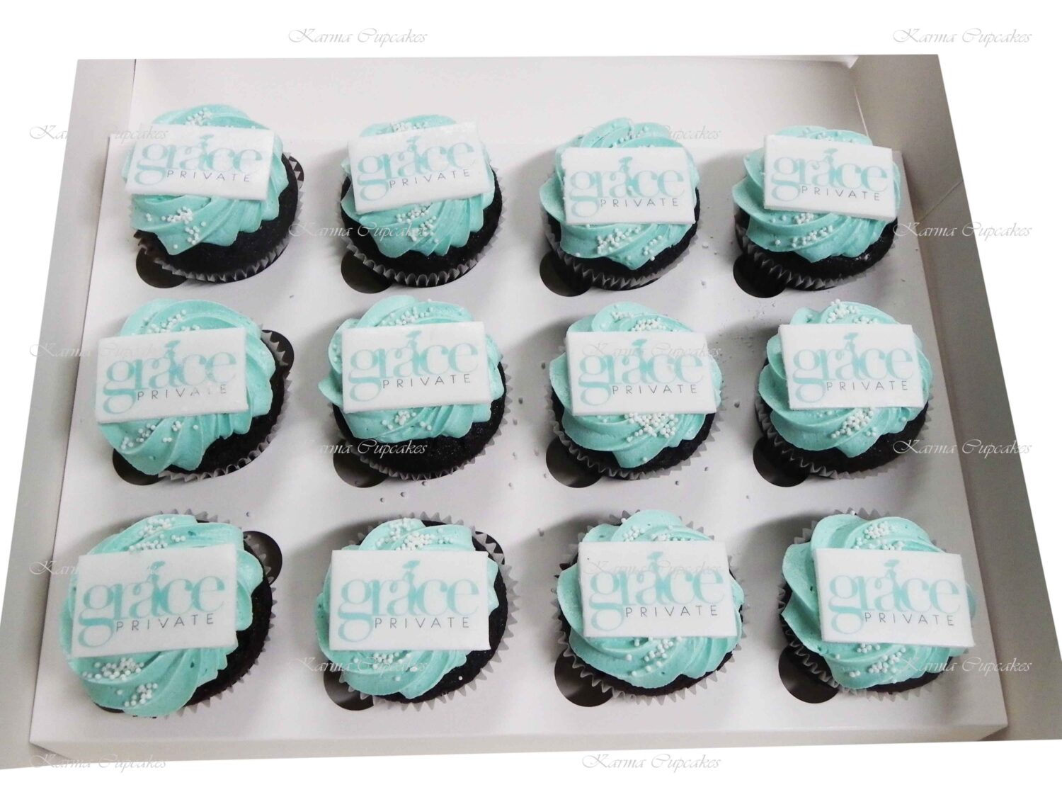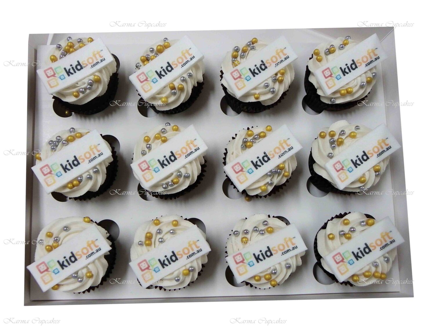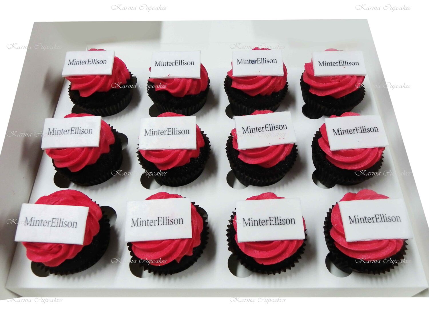 Karma Cupcakes is a specialist in corporate logo cupcakes.
