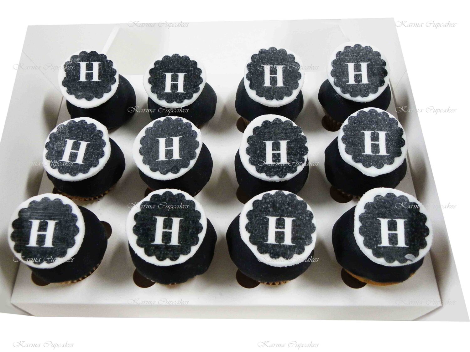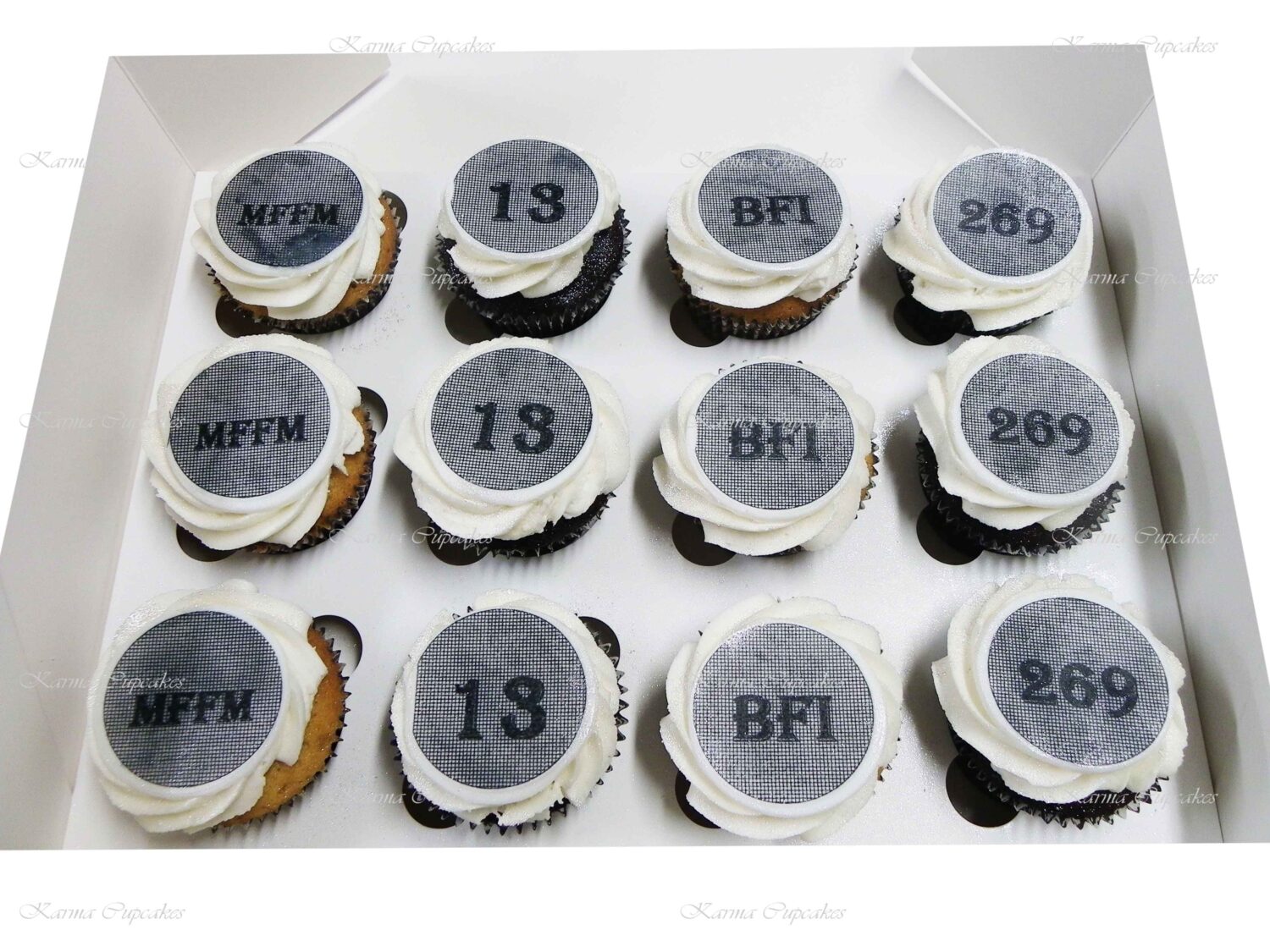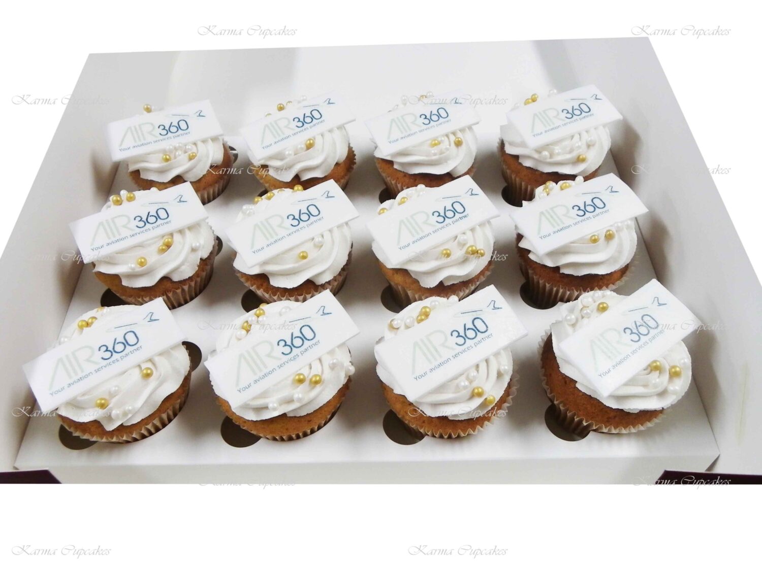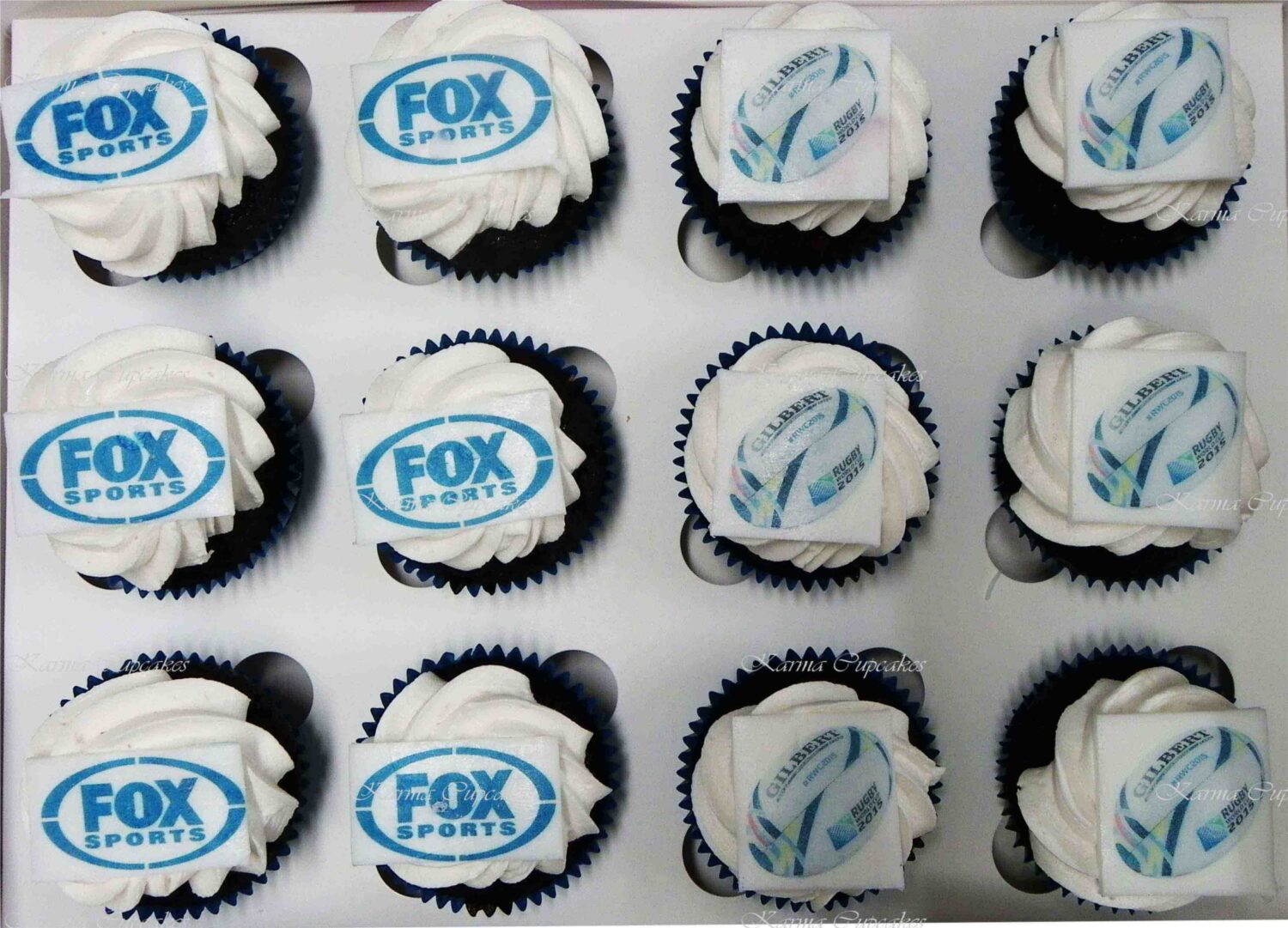Karma Cupcakes is a specialist in corporate logo cupcakes.