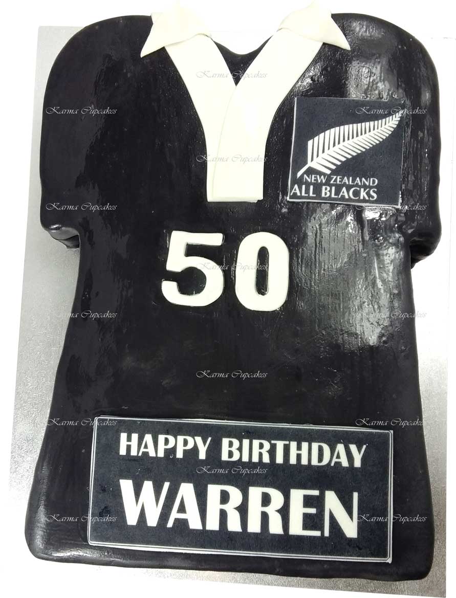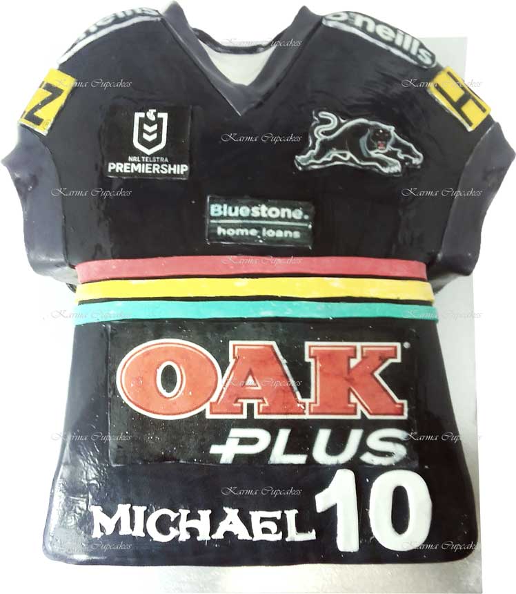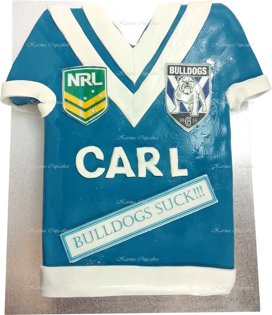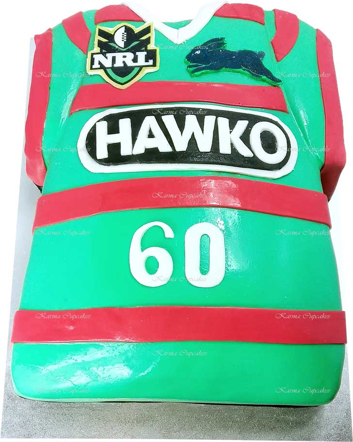 Choose your team and football code AFL, Rugby Union, Rugby League, Soccer, number and name for this football inspired slab cake. Fondant iced with personalised plaques.