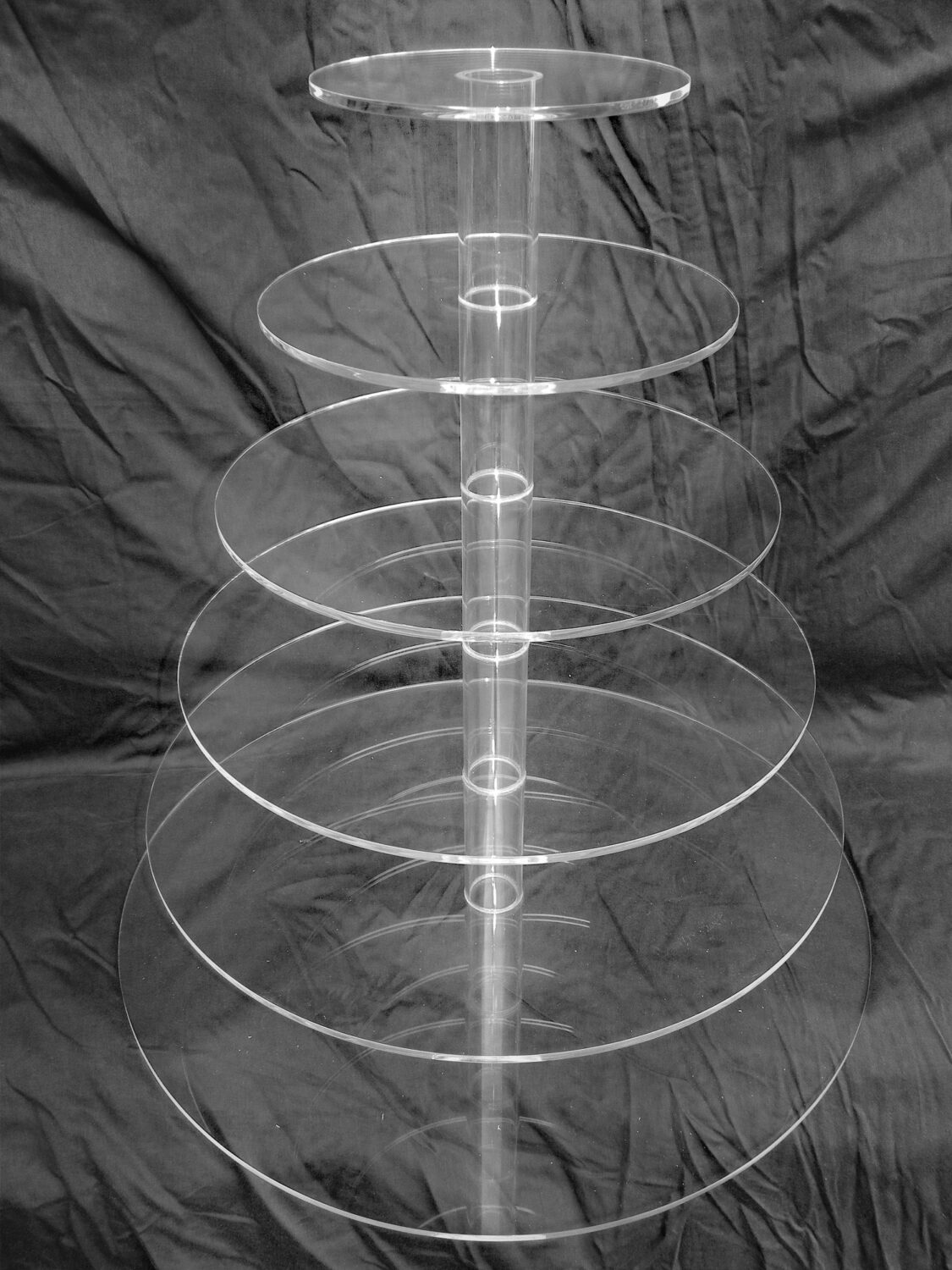 6 tier ROUND acrylic cupcake stand. Holds approximately 60 – 80 cupcakes
