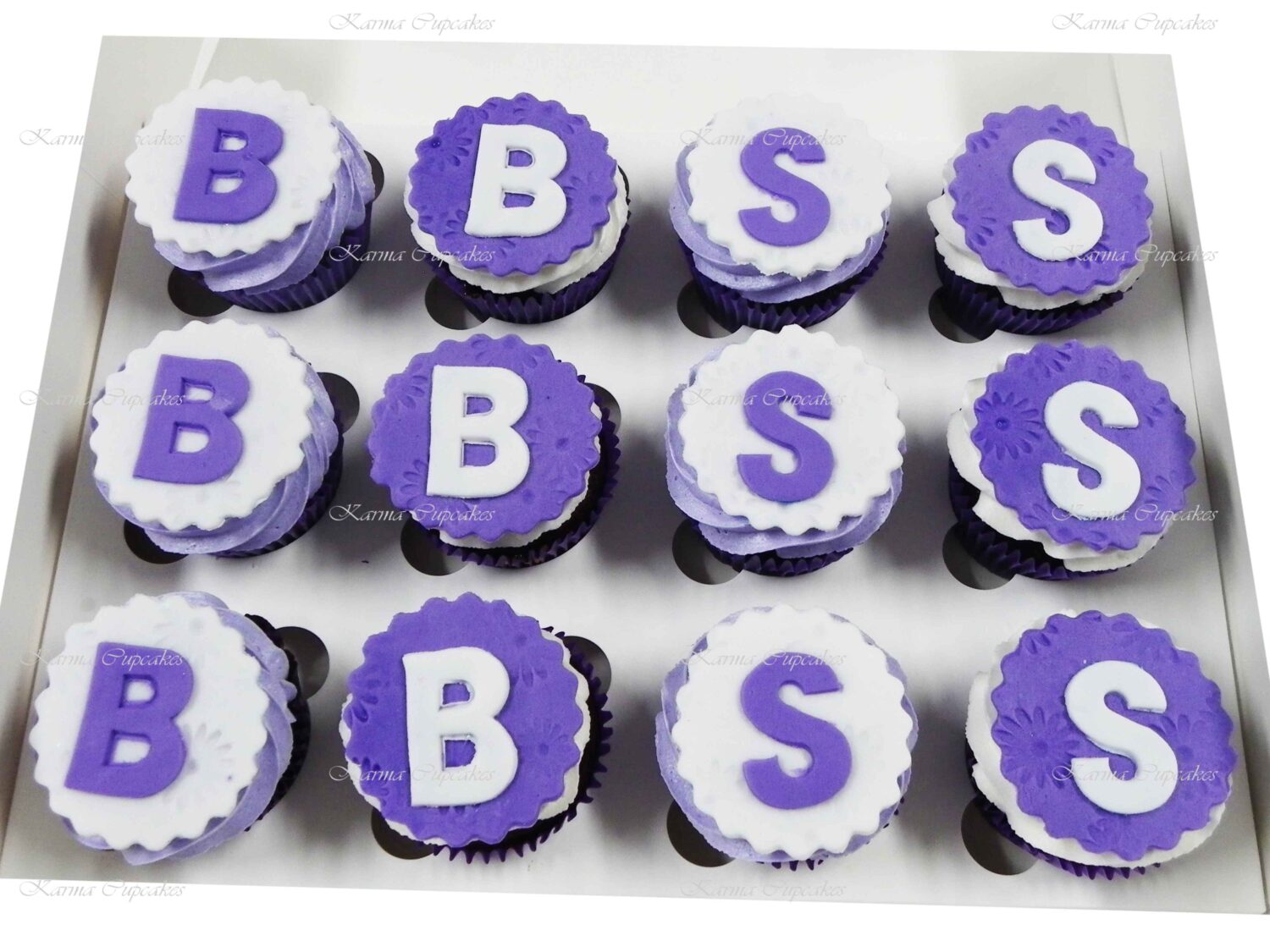 Chocolate and vanilla cupcakes topped with embossed icing and your choose of letter. Please advise at checkout your choose of letter in the comments section.
