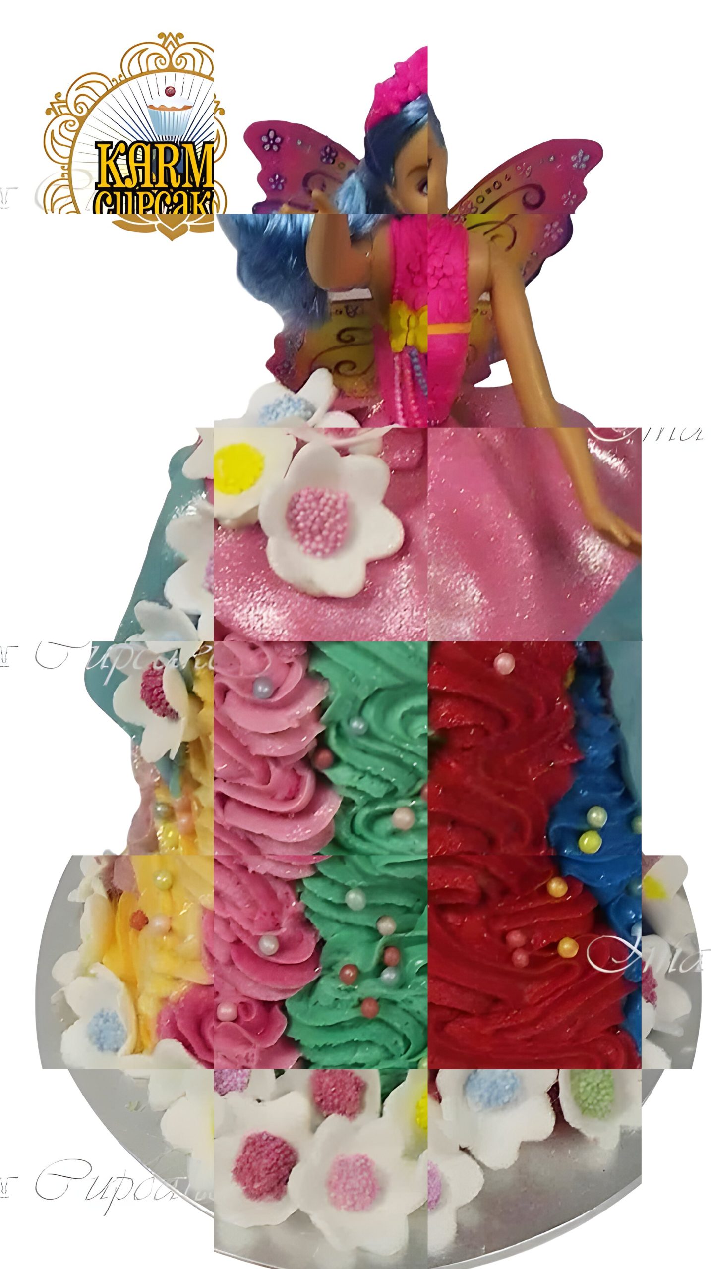 3D Princess Cake with Buttercream Iced Dress Cakes and Sugar Flowers. Serves approximately 16 cafe size portions. Please advise at checkout any colour changes, wording on the edible plaque and cake flavour.