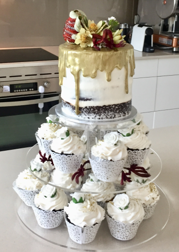 The cake and gold drizzle was absolutely perfect and I decorated it with fresh native flowers to match the theme.