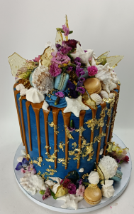The cake and gold drizzle was absolutely perfect and I decorated it with fresh native flowers to match the theme.